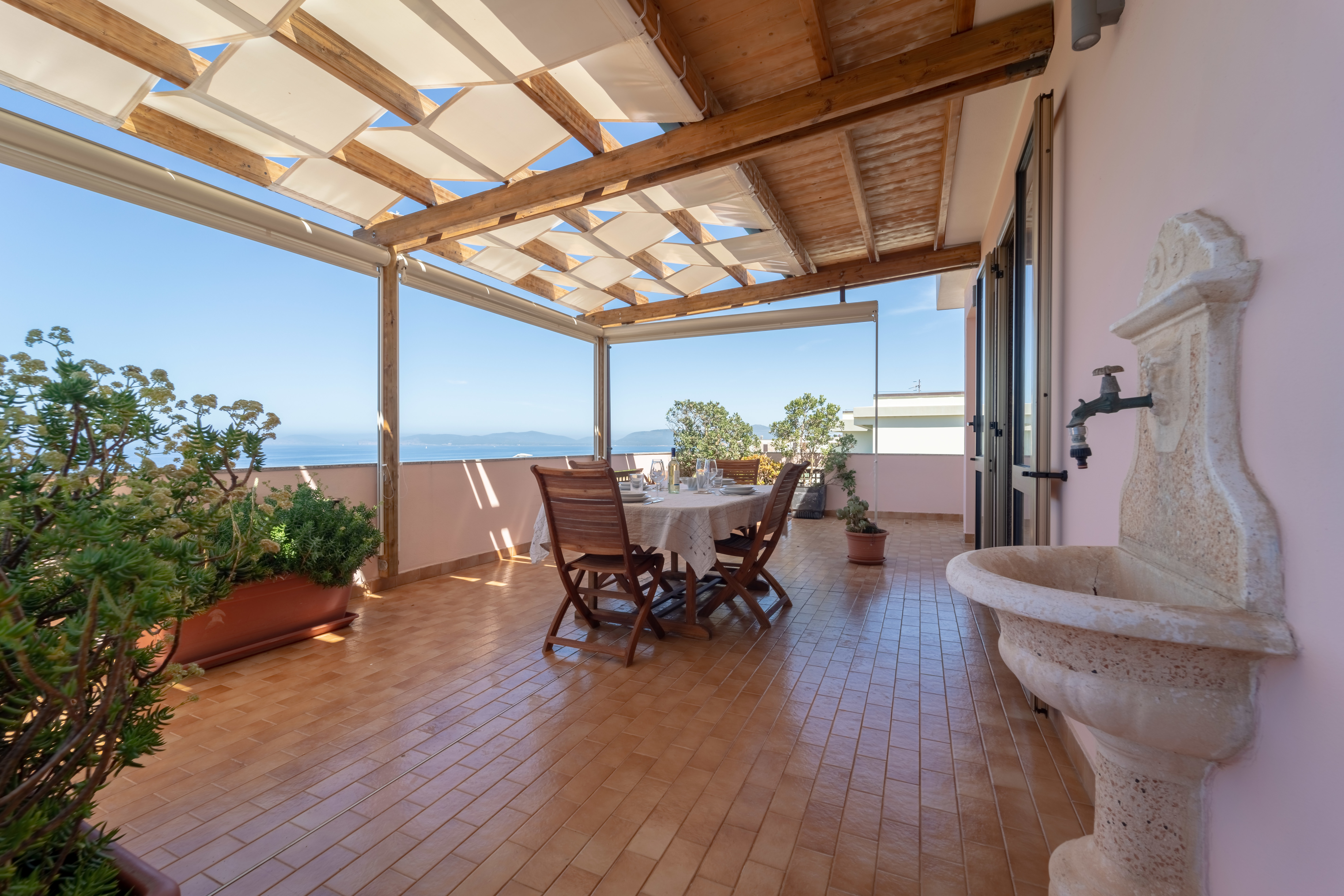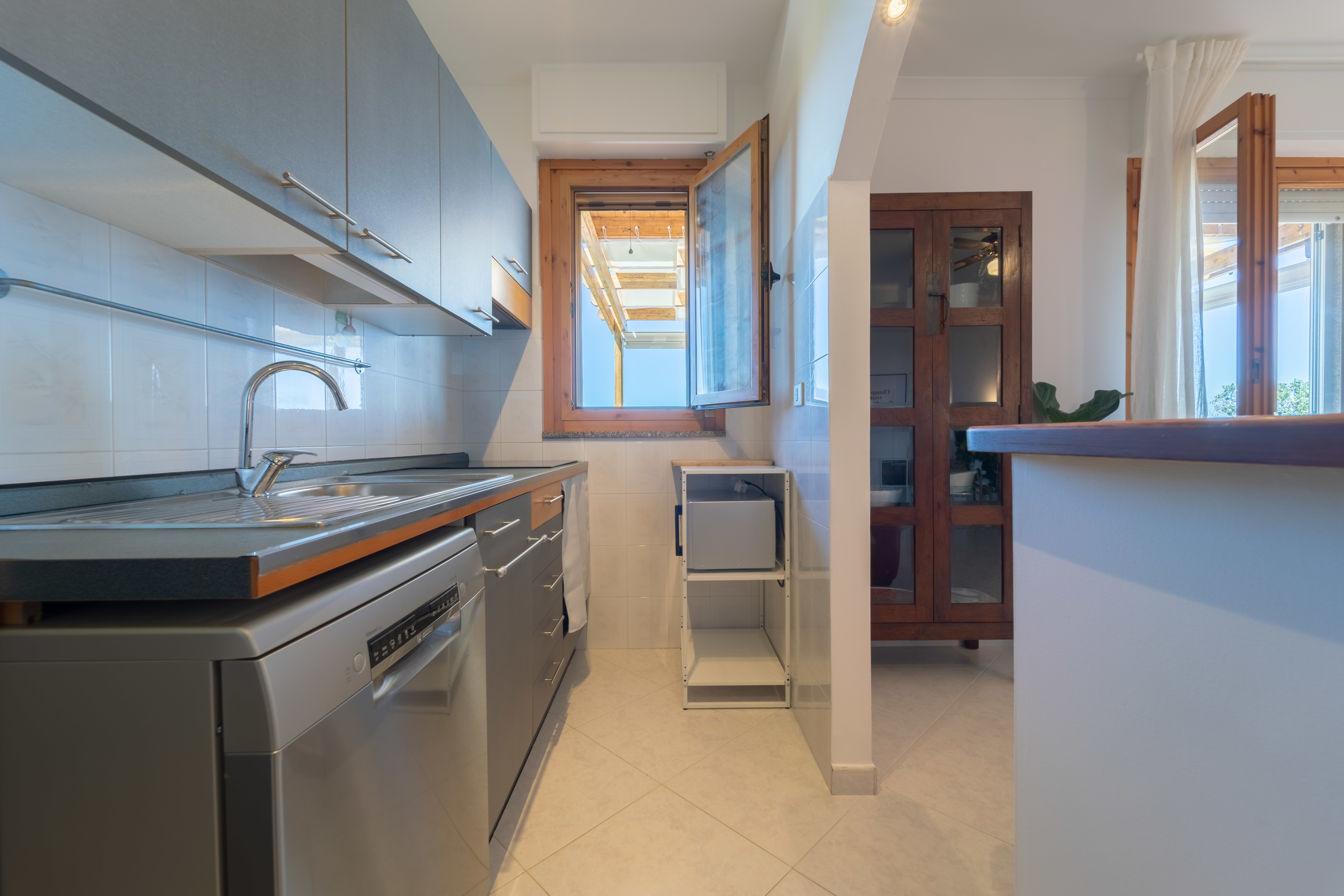 Casa Isadora – Alghero Casa Isadora è un elegante appartamento vista mare situato nella splendida città di Alghero, perfetto per una vacanza all’insegna del comfort e del relax. L’appartamento dispone di due camere da letto: una luminosa matrimoniale e una singola, ideali per accogliere coppie, famiglie o piccoli gruppi di amici. La zona living è ampia e curata nei dettagli, con divano comodo, TV e raffinati accessori di design che creano un’atmosfera accogliente e moderna. La cucina è completamente attrezzata, dotata di lavastoviglie, forno a microonde e tutto il necessario per cucinare in libertà. Il bagno con doccia è moderno e funzionale. L’appartamento è inoltre fornito di aria condizionata, connessione Wi-Fi veloce e, fiore all’occhiello, una magnifica terrazza vista mare, molto spaziosa e arredata con comodi arredi da esterno: il luogo perfetto per fare colazione guardando il mare o godersi un tramonto indimenticabile. Casa Isadora è il punto di partenza ideale per esplorare Alghero e la sua costa, senza rinunciare allo stile e alla comodità.