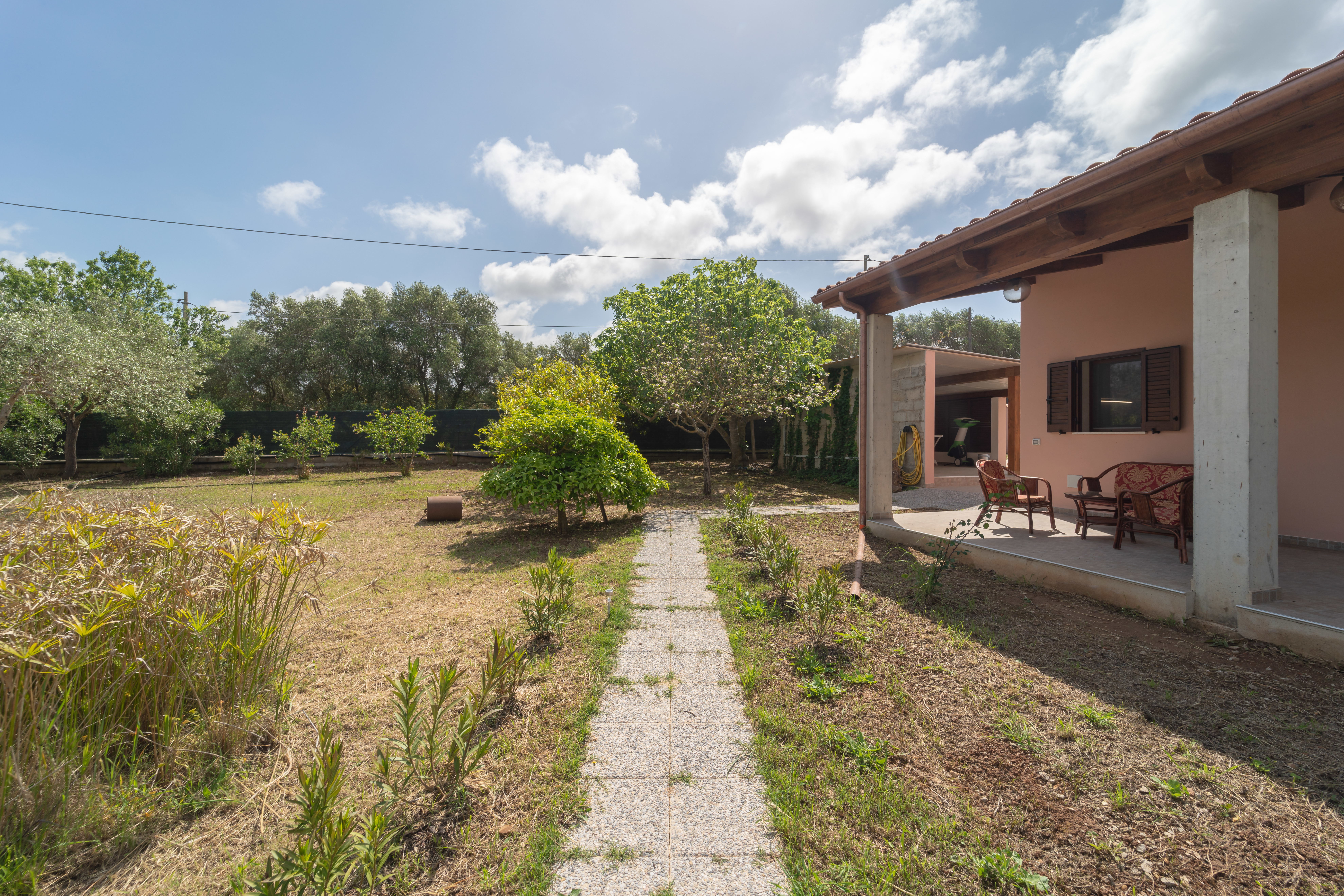 Villa Cantiano – Oasi di tranquillità nella campagna di Alghero Immersa nel verde e nella quiete della campagna algherese, Villa Cantiano è una deliziosa casa indipendente perfetta per chi cerca relax e natura, a pochi minuti dalle spiagge e dal centro storico di Alghero. La villa è composta da una camera da letto matrimoniale, un luminoso soggiorno con divano letto, una cucina completamente attrezzata, e un bagno moderno con doccia. All’esterno, potrete godervi una spaziosa terrazza arredata, ideale per colazioni all’aperto e cene al tramonto, un ampio giardino privato, e un posto auto riservato. Dotata di aria condizionata e connessione WiFi gratuita, Villa Cantiano offre tutti i comfort per un soggiorno piacevole e rilassante. Il vero tocco di charme? Un pittoresco laghetto abitato da rane, che aggiunge un’atmosfera naturale e suggestiva, perfetta per chi ama la vita all’aria aperta. Ideale per coppie, famiglie o piccoli gruppi, Villa Cantiano è il rifugio perfetto per vivere la Sardegna in tutta la sua autenticità.